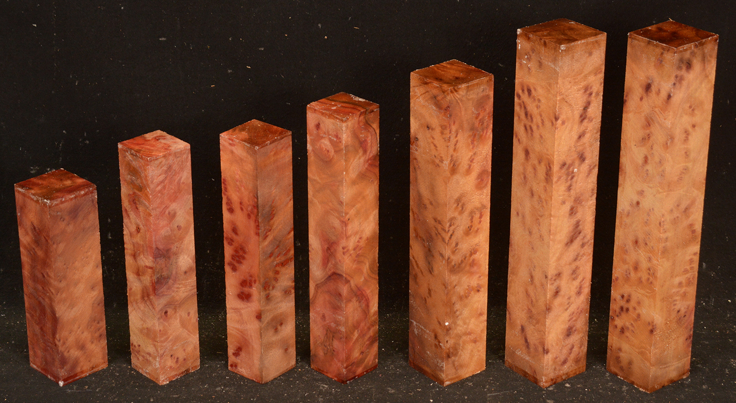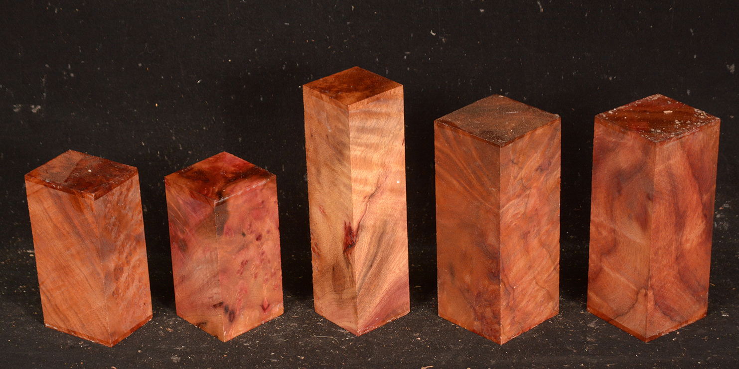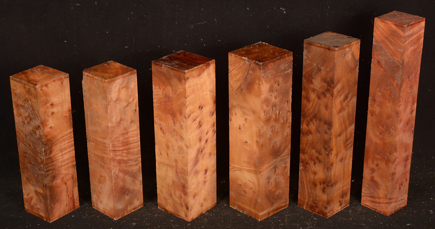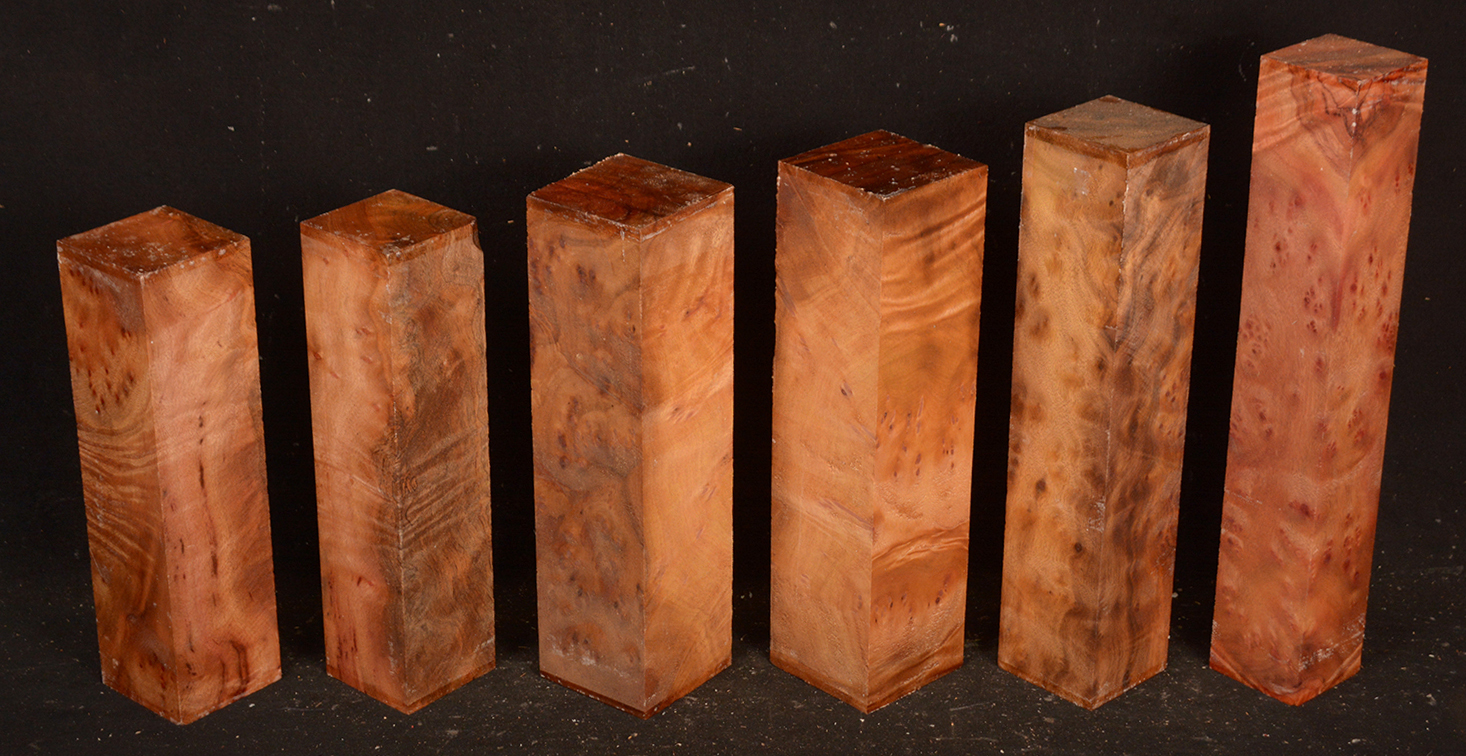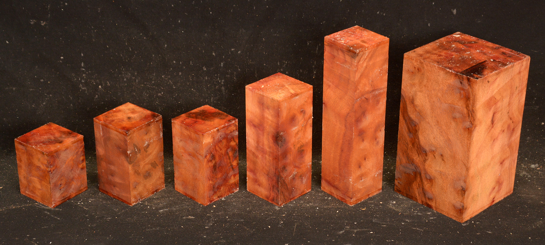 This rare burl is from S.E. Asia and is seldom seen on the world market. It is fine-grained and varies in color from a light reddish-brown to almost scarlet. It is easy to work and has a very pungent, spicy scent. For a burl it is remarkably stable. Green to partially air dried.