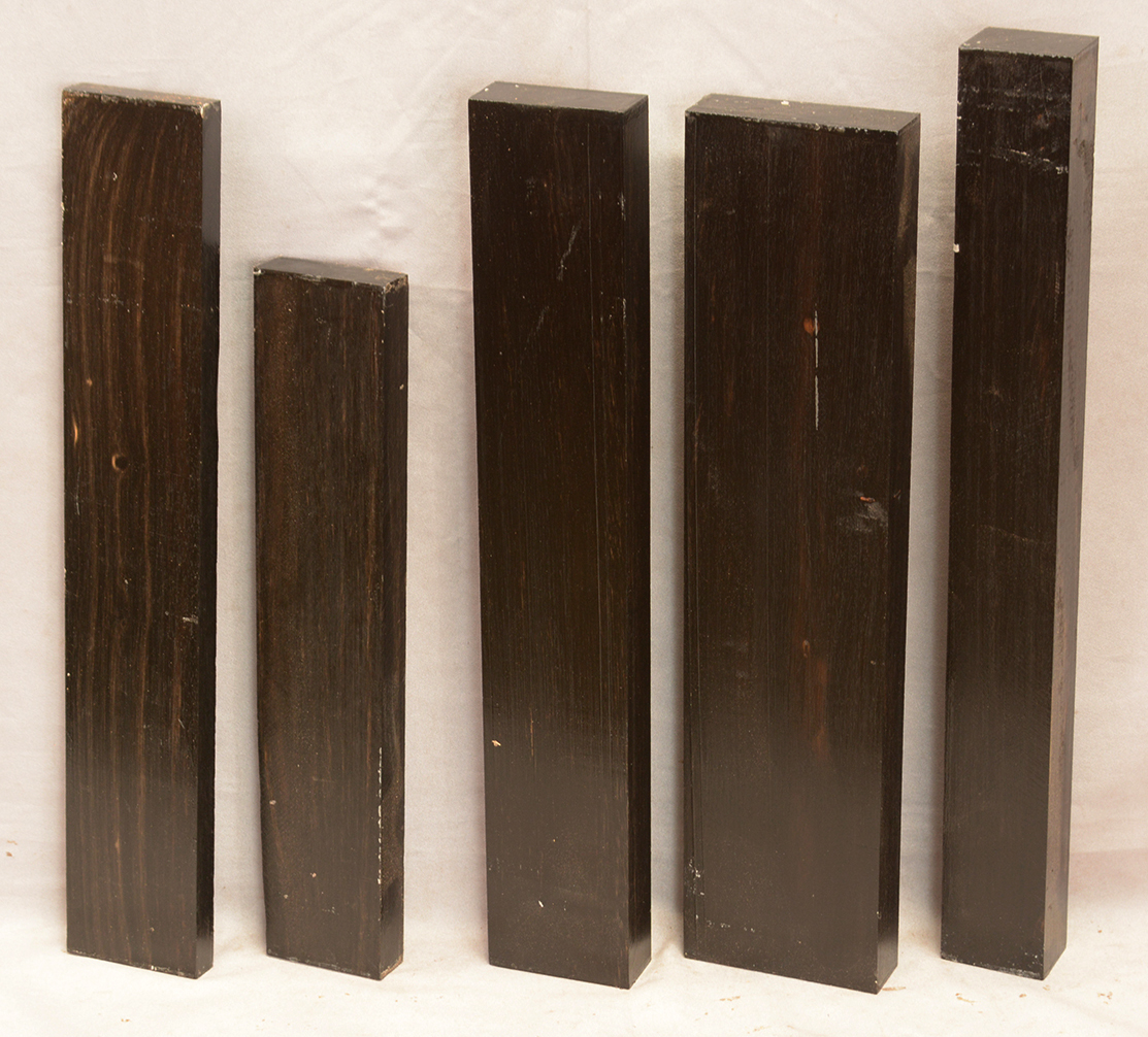 Sometimes called Gabon or Gaboon, this Ebony is sometimes jet black but oftentimes has grayish streaks that mostly disappear when finished or after the made object has been put into service. This Ebony has a marked resistance to checking that is characteristic of some of the Indian and Asian species. It has a wonderful texture and is easily carved, planed, turned, and milled. It is fairly fine-grained and takes a high polish. This Ebony usually originates in either Cameroon or Nigeria and the logs are rough hewn in the forest and oftentimes brought to the nearest road by human porters. With the disappearance of other species of black Ebony this species is fast becoming the Ebony of choice.