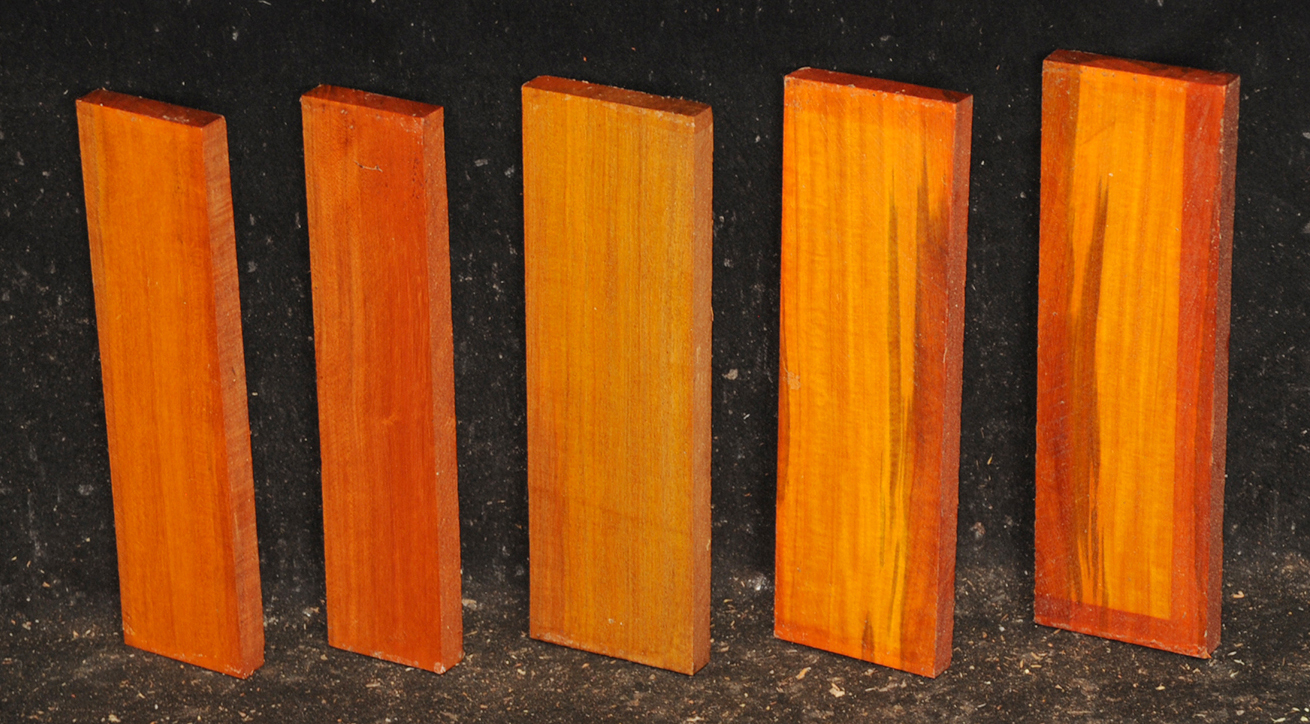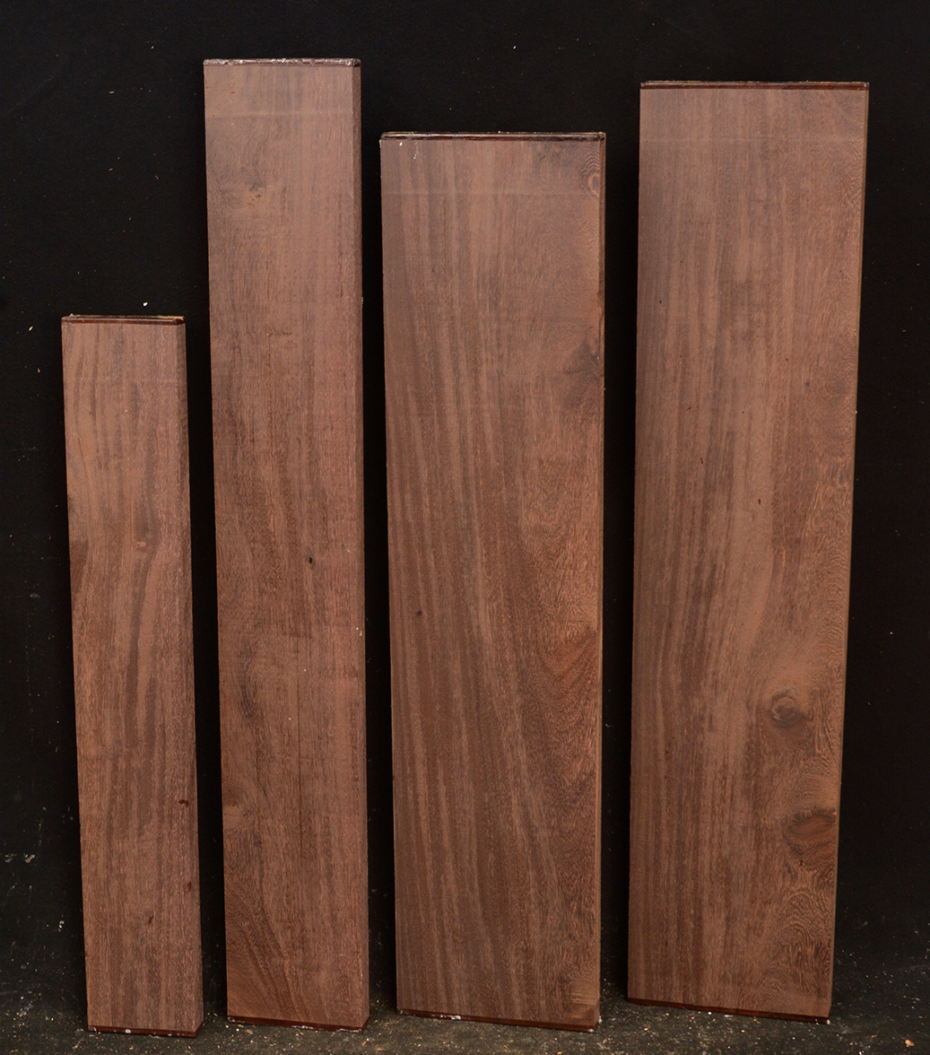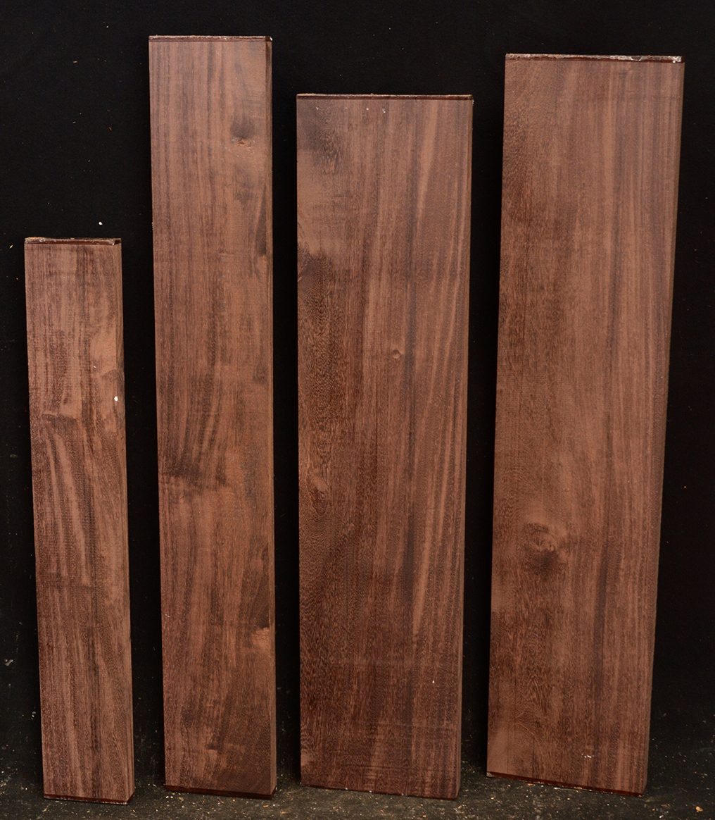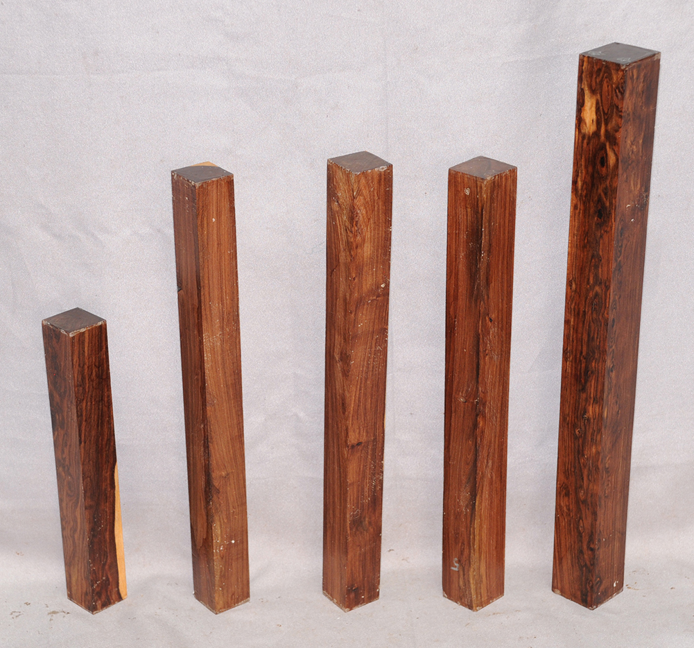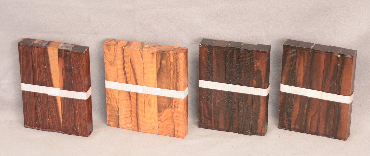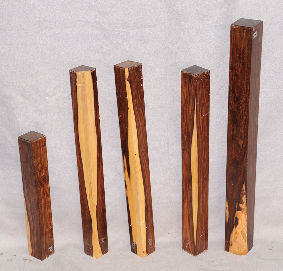 C & D are Figured Macassar Ebony, 5 pieces each.
